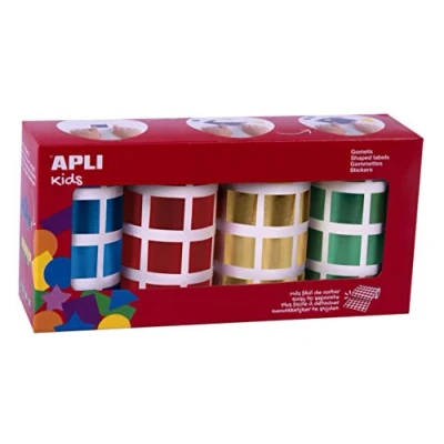 APLI Kids 18327 Pack Metallic Square Gomets Rolls 20 mm Blue, Red, Yellow and Green 4 u.