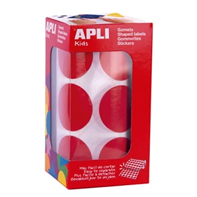 Roll of XL round gomets diameter 33 mm in red with permanent adhesive Each roll contains 59 pre-cut sheets for easy separation, a total of 708 gomets per roll Perfect format for use in schools, kindergartens, children's workshops or any other group dealing with children.