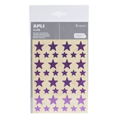 Bag stickers with star motif of two different sizes (12.5 mm and 19.5 mm) in purple Easter motifs Each pack contains 3 sheets, total 120 stickers per bag Playing and creating with stickers is a basic activity that allows the development of fine psychomotor skills The geometrics help to work different skills and skills such as getting to know colours, shapes and sizes; developing logic and creativity Apli stickers meet the highest standards of quality and safety
