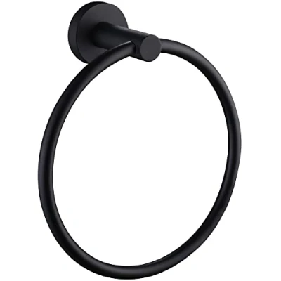 APLusee Matte Black Towel Ring Wall Mounted, Hand Holder for Bathroom, Solid Stainless Steel Round Hanger