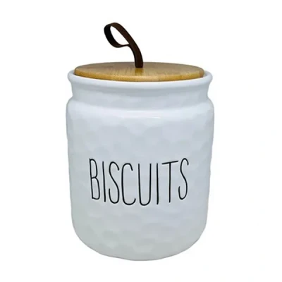 General description The Apollo Dimples Biscuit Jar is a stylish and functional storage solution for your favorite biscuits. Made from ceramic and finished in a sleek white glaze, it features a unique dimple effect on the exterior. The word 'biscuits' is elegantly debossed in black, adding a touch of sophistication to your kitchen decor. This biscuit jar comes with a wooden lid that includes a convenient loop handle for easy access. Other information This biscuit jar is part of a collection, with other items sold separately.