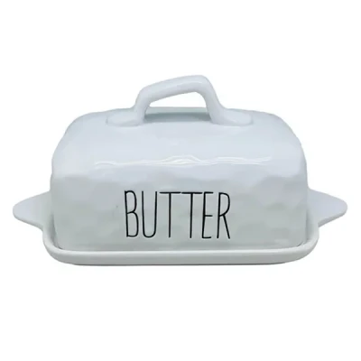 The Apollo Dimples Butter Dish is made from ceramic and finished in a white glaze.The exterior of the dish features a dimple effect and the word 'butter' is debossed in black on the lid. The butter dish comes complete with a matching lid and a handle.Ideal for keeping your butter fresh, this Apollo butter dish is part of a collection, sold separately.