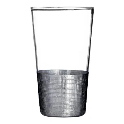 Eye-catching glasses can hold up to 370ml of liquid Cool, silver metallic lower half has been debossed with a grid pattern, adding texture Suitable for everyday use or those memorable occasions Care instructions: Wash in warm soapy water, rinse and towel dry Dimensions (H x W x D): 14 x 8 x 8 cm