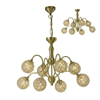 Apollo Semi Flush Ceiling Pendant 8 Light Satin Brass, Crystal