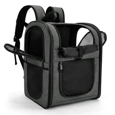 LARGE SIZE-Designed for the maximum convenience and comfort for you and your pet while hiking, traveling, or taking your best friend to the vet, or going for a walk in the park. Measures approximately 11.4" x 12.6" x 16.8" (L x W x H),larger than most competitors in the market.Easily fits medium cats&dogs,even large sized cats and other medium pets. BETTER CONSTUCTION-Well ventilated design for optimal airflow, two-way entry for easy access, top mesh window for more headroom and visibility, and thick, soft fleece bedding for your pet resting and relaxing. This backpack is firmly structured, providing ample room for your pet to move around. ESCAPE PROOF- The last thing you want is an escaped pet running around the airplane cabin or outdoors. APOLLO WALKER pet backback carrier keeps your pet safe and secure while flying, walking, cycling, or hiking with claw-proof mesh and zipper buckles. Carrier also has a leash tether to attach to your dog or cat’s collar if you decide to open the top window to let your pet stick their head out. COMFORTABLE AND CONVENIENCE – The back and shoulder straps are equipped with extra thick padding for more comfort during long trips. This backpack comes with chest buckles and waist buckles to give you extra support. AIRLINE REQUIREMENTS - Always keep in mind each airline sets their own specific requirements, and they can even vary from their domestic, international, and shuttle services so it is always advised to check with your airline of choice.