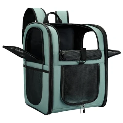 LARGE SIZE-Designed for the maximum convenience and comfort for you and your pet while hiking, traveling, or taking your best friend to the vet, or going for a walk in the park. Measures approximately 11.4" x 12.6" x 16.8" (L x W x H),larger than most competitors in the market.Easily fits medium cats&dogs,even large sized cats and other medium pets. BETTER CONSTUCTION-Well ventilated design for optimal airflow, two-way entry for easy access, top mesh window for more headroom and visibility, and thick, soft fleece bedding for your pet resting and relaxing. This backpack is firmly structured, providing ample room for your pet to move around. ESCAPE PROOF- The last thing you want is an escaped pet running around the airplane cabin or outdoors. APOLLO WALKER pet backback carrier keeps your pet safe and secure while flying, walking, cycling, or hiking with claw-proof mesh and zipper buckles. Carrier also has a leash tether to attach to your dog or cat's collar if you decide to open the top window to let your pet stick their head out. COMFORTABLE AND CONVENIENCE - The back and shoulder straps are equipped with extra thick padding for more comfort during long trips. This backpack comes with both waist and chest buckles to give you extra support. AIRLINE REQUIREMENTS - Always keep in mind each airline sets their own specific requirements, and they can even vary from their domestic, international, and shuttle services so it is always advised to check with your airline of choice.
