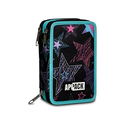 Appack 3 Zip Case, Black, Complete with Pencils, Markers Etc.., School and Leisure