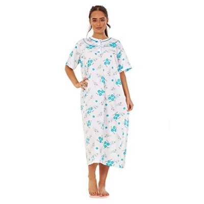 Apparel Women Long Nightdress 100% Cotton Floral Button Short Sleeve Nightwear M to 3XL Green