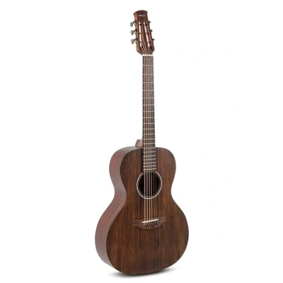 High-quality materials: The guitar has a solid European spruce top, which is known for its clear and resonant sound. The back and sides are made of mahogany, which provides warmth and resonance. Precise construction: The dovetail neck joint, the bone nut and the bridge inlay with compensation as well as the pinless bridge design ensure precise sound transmission and excellent playability. Elegant look: The guitar is decorated with a black binding and has an open-pore matt finish with an antique-look top, which gives it a nostalgic and stylish look. Extended playing options: With 20 nickel silver frets, a scale length of 648 mm and a nut width of 45 mm, the guitar offers a wide range of tonal options and makes playing easier. Special features: The guitar has a window head, chrome tuners for precise tuning and the use of high-quality Adamas strings ensures excellent sound quality.