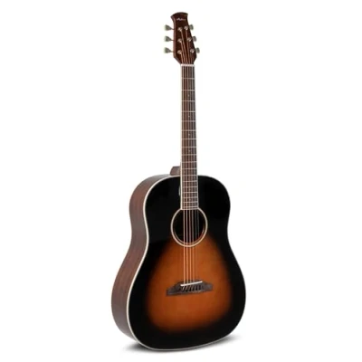 High-quality materials: The guitar has a solid European spruce top, mahogany for the back, sides and neck as well as an Ovangkol fingerboard and bridge for a high-quality sound. Precise construction: With a dovetail neck joint, bone nut and bridge inlay with compensation and a pinless bridge design, attention is paid to precise sound transmission and playability. Elegant look: The guitar is finished with cream-coloured ABS binding, a sunburst high-gloss finish and chrome tuners with tulip wings, giving it an appealing appearance. Extended playing options: The guitar offers 20 nickel silver frets and a neck joint at the 12th fret, which facilitates access to higher frets and expands the tonal options. Quality strings: The Adamas strings supplied guarantee an excellent sound and a long service life.