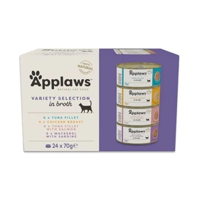 Applaws 100% Natural Wet Cat Food, Multipack Chicken and Fish Selection in Broth 70g Tin (24 x Tins)