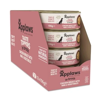 Applaws 100% Natural Wet Dog Food Tins, Chicken Breast with Ham and Vegetable in Broth, 156g (Pack of 12)