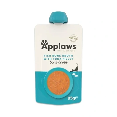 Applaws Natural Fish Bone Broth with Tuna for Cats, Wet Cat Food Soup Supports Hips, Joints, Digestion and Hydration, High in Collagen 12x85g Spout Pouch
