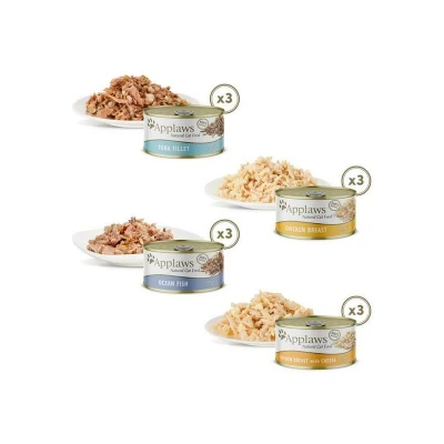 ManoManoGeneral description Applaws Cat Food Supreme Selection offers a variety of flavors to satisfy your feline's taste buds. This pack includes a selection of chicken, mackerel, and tuna, ensuring a delightful meal for your cat. Technical specifications Pack size: 12 x 70g Flavors included: Chicken Breast with Cheese (2), Mackerel with Sweetcorn (3), Tuna Fillet (3)