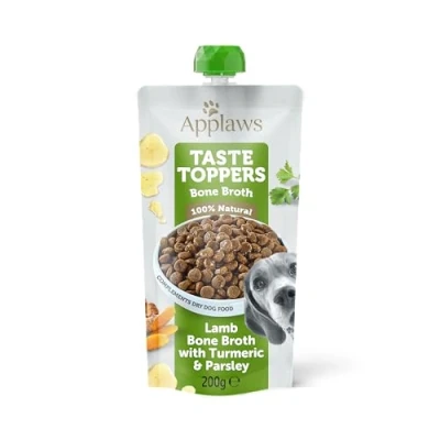 Applaws Taste Toppers 100% Natural Dog Food Topper, Lamb Bone Broth Liquid for Dogs, Kibble Topper 6 x 200g Spout Pouch
