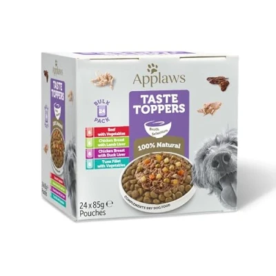 Applaws Taste Toppers Natural Wet Dog Food Pouch, Multipack Meat and Fish Selection in Broth, 24 x 85g Pouches