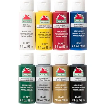 APPLE BARREL ACRYLIC PAINT. Set of 8 x 2 oz bottles of Apple Barrel Acrylic Paint and Red Apple, Bright Yellow, Cobalt Blue, Christmas Green, Pure Gold, Pure Silver, Black and White PE17854 MPN 17854