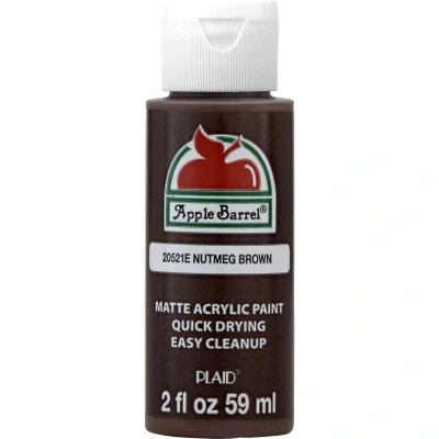 Nutmeg Brown Apple Barrel Colors are the crafters choice for quality, selection, and value. The versatile, all-purpose acrylic paint is ideal for craft projects of all kinds and works on most porous surfaces: wood, plaster, tin, craft foam, Styrofoam, terracotta, and more. Offering excellent coverage, Apple Barrel dries quickly to a soft matte finish. All colors are AP-certified non-toxic and water-based for easy soap and water cleanup. PE20521EX MPN 20521EX