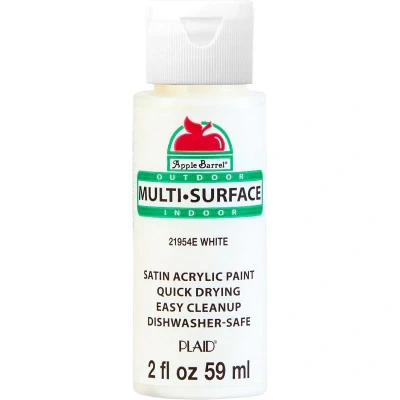 White Apple Barrel Multi-Surface Acrylic Paint makes your projects even more fun and easier. It bears the same great characteristics as original Apple Barrel paint quality, selection, and value with the added benefit of multi-surface coverage! This water-based, certified non-toxic craft paint is great for tin, terracotta, paper mache, canvas, wood, plaster, rigid plastic, fabric, concrete, glass, and ceramics and it cleans up easily with soap and water! Size: 2 oz. More Info: 2 oz. provides up to 4 square feet of coverage, 2 coats PE21954EX MPN 21954EX