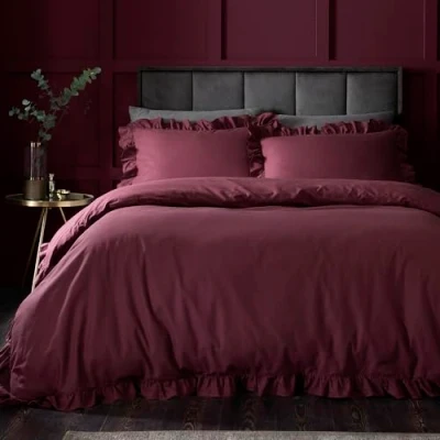 Appletree Hygge Cotton Duvet Cover Set, 100% Cotton, Super King 260x220cm, Berry, Plain with Frilled Edge, 144 Thread Count, Orange