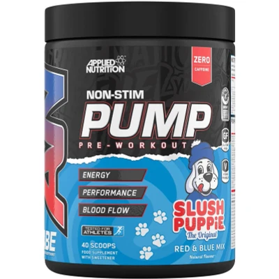 Applied Nutrition ABE Pump Stim Free Pre Workout Powder Slush Puppie Red and Blue Mix Flavour is a stimulant-free, Informed Sport certified pre-workout powder that boosts muscle pump and endurance, ideal for athletes and caffeine-sensitive individuals. Features 25 servings with a nostalgic sweet-sour fruity taste per 500g tub.