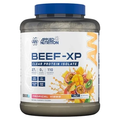 Applied Nutrition Beef XP Clear Hydrolysed Protein Isolate, Fruit Juice Style, Dairy Free Powder, Lactose Free, Zero Sugar, Low Fat, 1.8kg 60 Servings (Tropical Vibes)