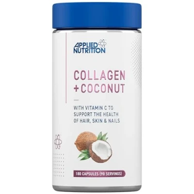 Applied Nutrition Collagen + Coconut Capsules Marine with Vitamin C & Oil Hair,Skin Nails Support Joint Connective Tissue Health Halal Certified 180 (90 Servings)