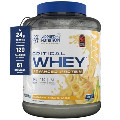 Applied Nutrition Critical Whey Protein Powder 24g per Serving, High Powder, Shake with BCAAs & Glutamine Muscle Growth Recovery (2Kg 61 Servings) (Banana Milkshake)