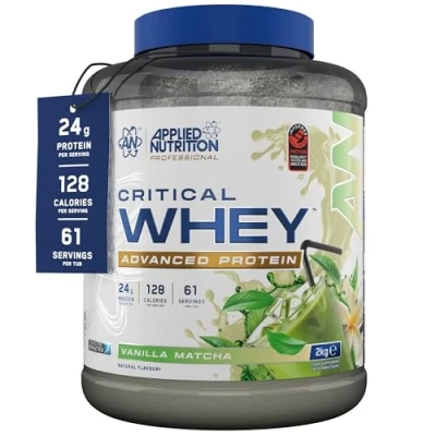 Applied Nutrition Critical Whey Protein Powder 24g per Serving, High Powder, Shake with BCAAs & Glutamine Muscle Growth Recovery (2Kg 61 Servings) (Vanilla Matcha)