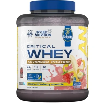 Applied Nutrition Critical Whey Protein Powder 24g per Serving, High Powder, with BCAAs & Glutamine Muscle Growth Recovery (825g 25 Servings)(Chiquita Banana Strawberry)