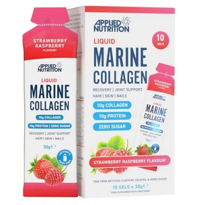 Applied Nutrition Liquid Marine Collagen Gel 10g + Vitamin C Ready to Use Beauty Sugar Free Strawberry Raspberry 10 x 30g Sachets