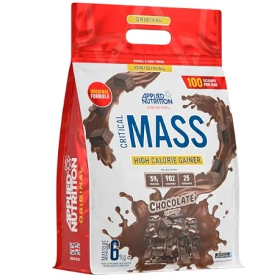 JoybuyApplied Nutrition CRITICAL Mass Original Chocolate 6 kg is a high-calorie, high-protein mass gainer shake formulated for hard gainers and muscle growth. It features a blend of complex and fast-acting carbohydrates, essential fatty acids, L-Glutamine, MCT, CLA, and is Halal certified.