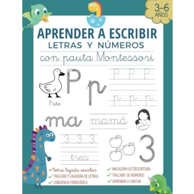 APRENDER a ESCRIBIR LETRAS Y NÚMEROS CON PAUTA MONTESSORI: Caligrafía iniciación lectoescritura niños de 3 4 5 6 años . Libro escritura letra ... divertidas para años)