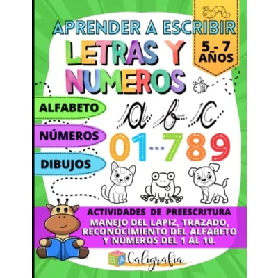 Aprender a escribir letras y numeros para Niños de 5 6 7 años con actividades preescritura: Cuaderno Caligrafia infantil facil divertida, ... (PREESCRITURA))