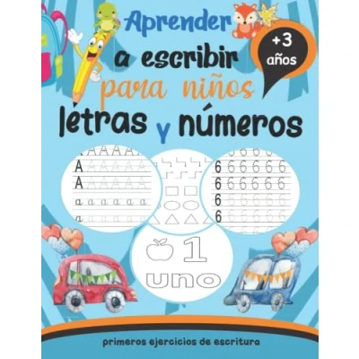 Aprender a escribir letras y números para niños: primeros ejercicios de escritura: cuaderno actividades preescolar: +3 años: libro caligrafia niños infantil: aprendo en casa las