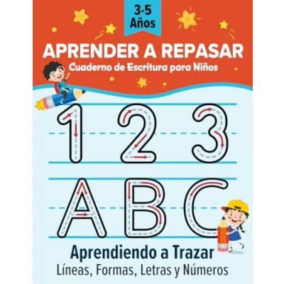 Aprender a Repasar: Aprendiendo Trazar Líneas, Formas, Letras y Números Cuaderno de Escritura para Niños Preescolar Libro Actividades 3 5 años Escribir Español
