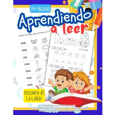 Aprendiendo a leer, Lectura inicial, Cuaderno de actividades para niños 3 6 años: Trazo en español, Letras, abecedario, vocales, silabas y frases ... ninos (Aprendiendo leer español)