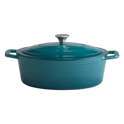APS 88316 "5 STARS" Roasting Dish with Lid Cast Iron Suitable for Induction Cookers Oven Safe Holder 33 x 25 cm 5 Litres Turquoise