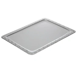 15(H) x 420(W) x 310(D)mm. Stainless Steel. Silver. Elegantly detailed edges. Perfect for serving canapés during functions and events. Raised edges stop food sliding off. Sold Singly. High-polish finish. Robust stainless steel construction.