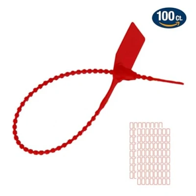 Apstaqeoo 100PCS Plastic Anti Tamper Seals, Safety Zip Ties for Fire Extinguisher Security Seals Pull Tite Tags Luggage Disposable Self Locking Tie 250mm Length Included Labels (Red)