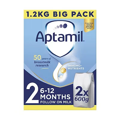 Aptamil Follow On Milk 6 12 Months 2 x 600g (1.2kg)