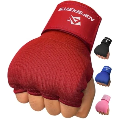 AQF Boxing Inner Gloves Hand Wraps Fist Padded Bandages MMA Gel Strap Mitts Kick Black, Blue & Red (Red, Medium)