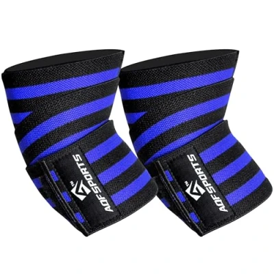 AQF Elbow Wraps for Weightlifting Gym Support Heavy Duty 40" Elasticated Sleeves Straps Powerlifting, Bodybuilding, Training & Bench Press (Pair) (Blk Blu)