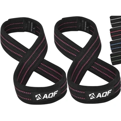 AQF Figure 8 Lifting Straps, Anti Slip Gym Wrist Supports for gym, Powerlifting, Weightlifting, Deadlifting, Heavy Duty Ideal Straps Strength Training (Black & Pink, S)
