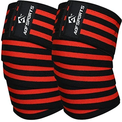 AQF Knee Wraps Weight Lifting Bandage IPL and USPA Approved Gym Support Heavy Duty 78 Elasticated Straps Guard Powerlifting, Squatting (Pair)