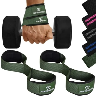 AQF Weight Lifting Straps Figure 8 with Padded Cuff Wrist Support Training Gym Hand bar Grip Gloves Workout (Military Green)
