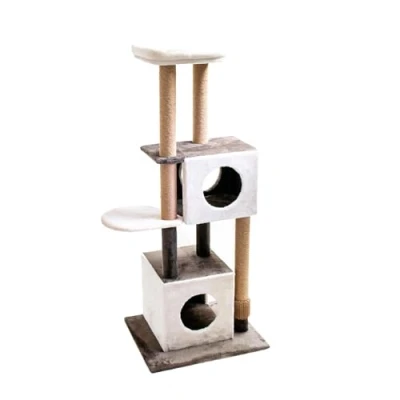The Sidney cat tree 140 cm high is the ideal solution for those looking for a robust product suitable for medium-sized cats with a more limited space in the home Made with thick sisal posts, it features hiding places and comfortable shelving surfaces that will offer your cat different and stimulating possibilities for play and relaxation Double bed and platform for your cat's nap Dimensions XXL 60x50x140 h cm Safety and Easy Assembly: Designed with your cats' safety in mind, with a stable base to prevent tipping.