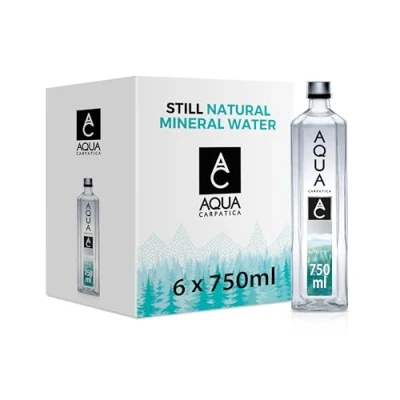 AQUA Carpatica Glass 750ml x 6 Pure Natural Still Mineral Water Pack Bottled Water, Virtually Nitrate Free, Low Sodium, Naturally Alkaline, Electrolytes, Premium Multipack 100% Recyclable