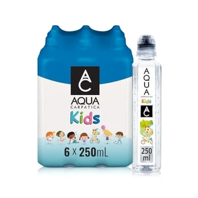 AQUA Carpatica Kids 250ml x 6 Pure Natural Still Mineral Water for Children with Spill Proof Sippy Cap, Virtually Nitrate Free, Low Sodium, Naturally Alkaline, Perfect Lunchboxes,100% Recyclable