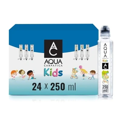 AQUA Carpatica Kids 250mlx24 Pure Natural Still Mineral Water for Children with Spill Proof Sippy Cap, Virtually Nitrate Free, Low Sodium, Naturally Alkaline, Perfect Lunchboxes, 100% Recyclable